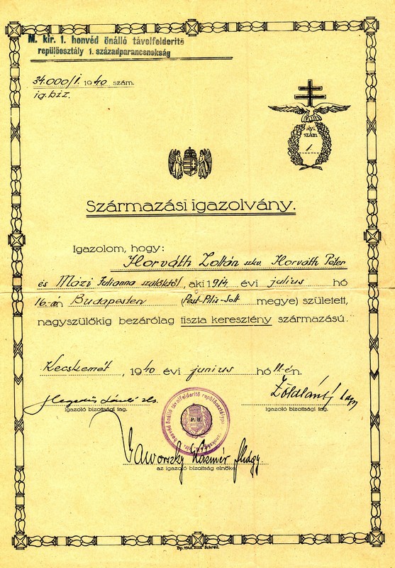 erről szakaszáról szóló fotóit és dokumentumait Zoltán fia