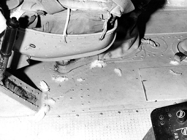 gép belülről, tollak a parancsnok ülése alatt. |